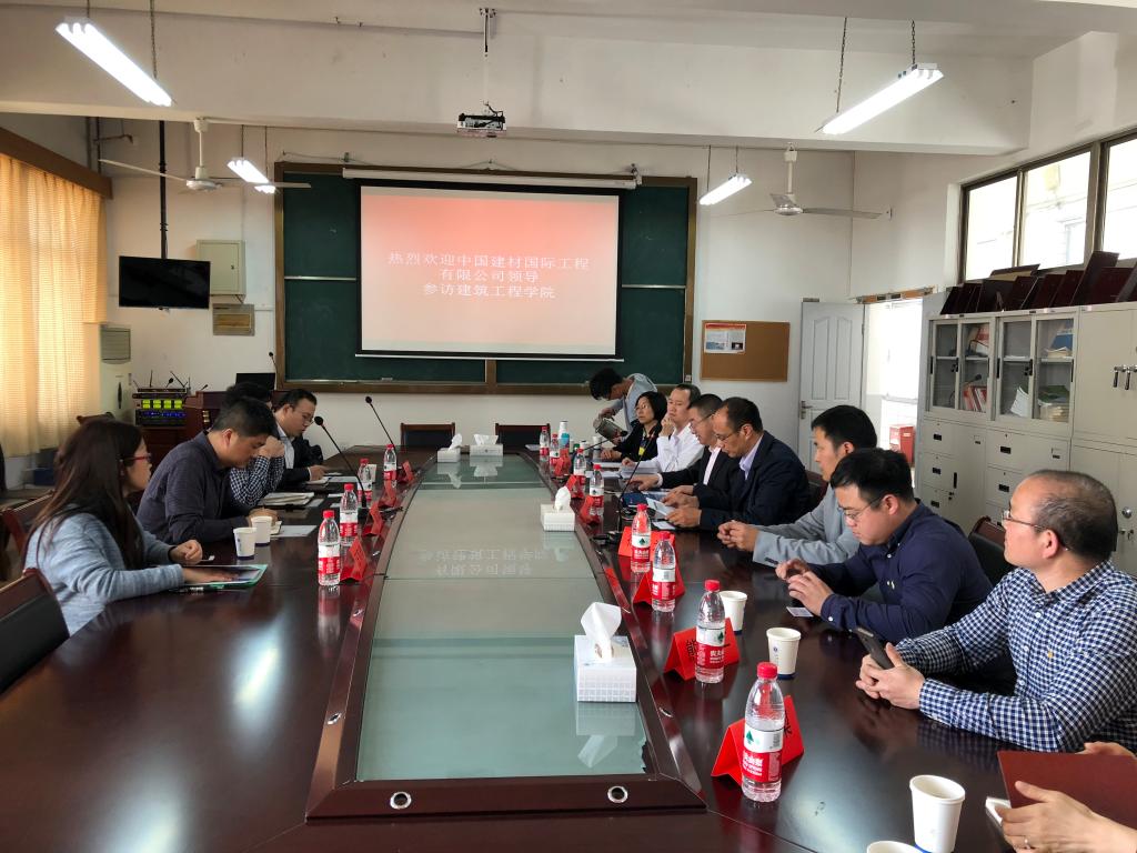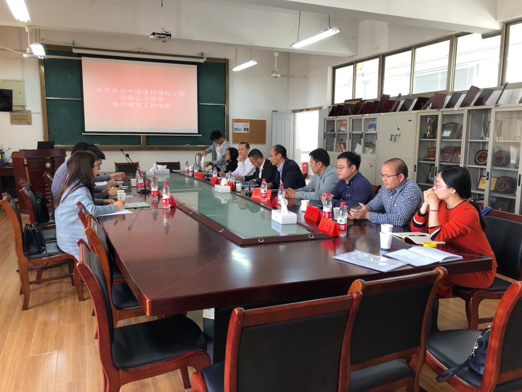 3月30日下午,中国建材国际工程集团有限公司吕宏炜副总裁一行四人参访后宫电影院 。四位客人在参观建筑工程实验中心后,在生化学院院长、中澳研究院刘小明副院长主持下,与后宫电影院 孙德发副院长等八位老师在建工楼319会议室进行了会谈,在会上,中国建材国际工程集团有限公司、后宫电影院 、中澳先进材料与制造研究所的相关同志作了工作介绍,双方参会人员进行了深入交流,并对共同感兴趣的项目进行了对接洽谈。