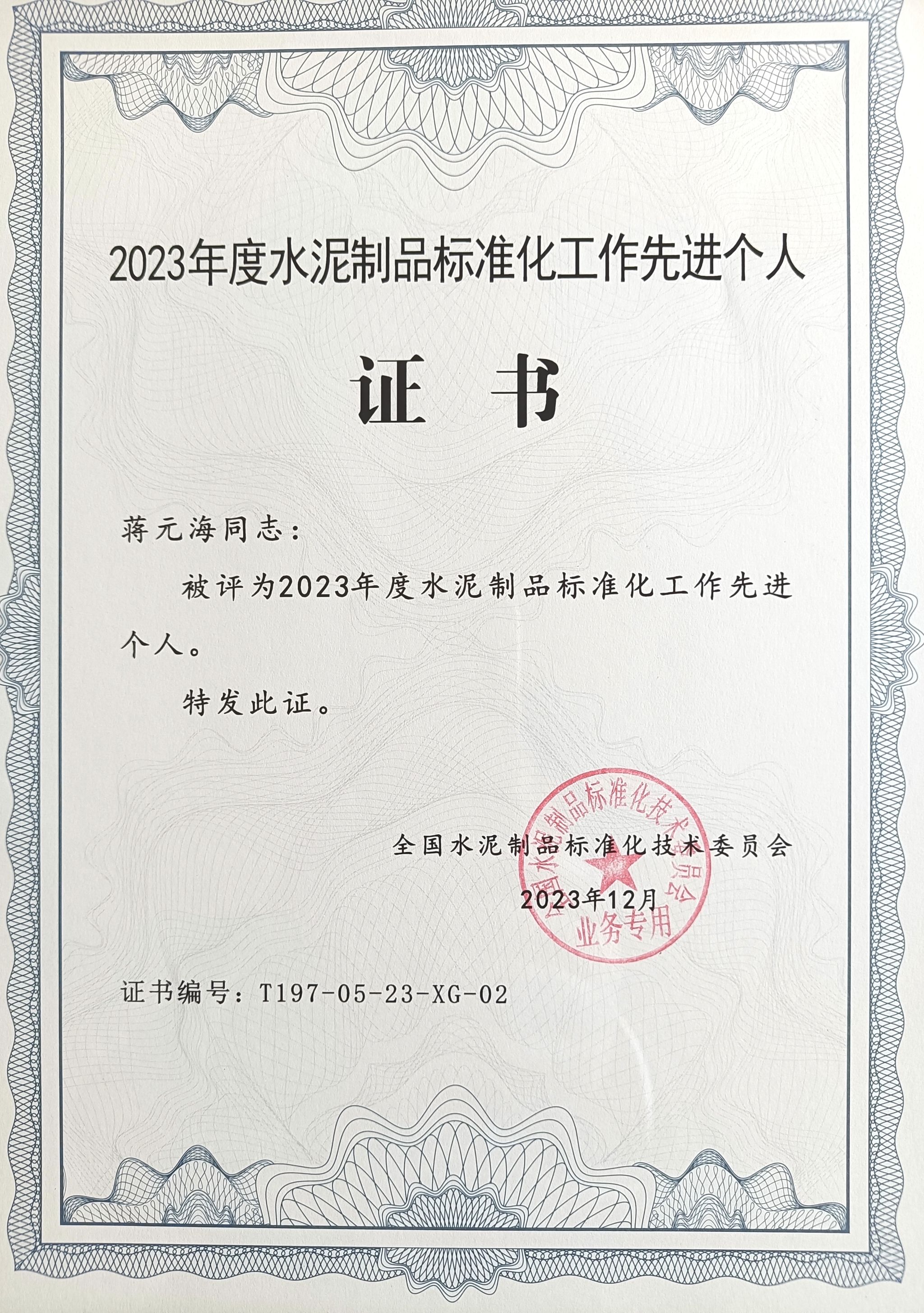 负责起草的《蒸养混凝土制品用掺合料》行业标准(JC/T 2554—2019)成果荣获标准贡献奖 ,蒋元海老师荣获标准化先进个人。
