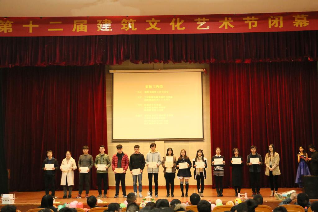 闭幕式由一段充满活力的开场舞拉开帷幕。接下来各位嘉宾分别为在班级风采秀、建工印象、索之道结构竞赛、师生小球赛竞赛活动中获奖的个人及团队颁发了奖状。随后,获奖代表段锴、吕锡婷同学分别对自己团队的作品进行了介绍。