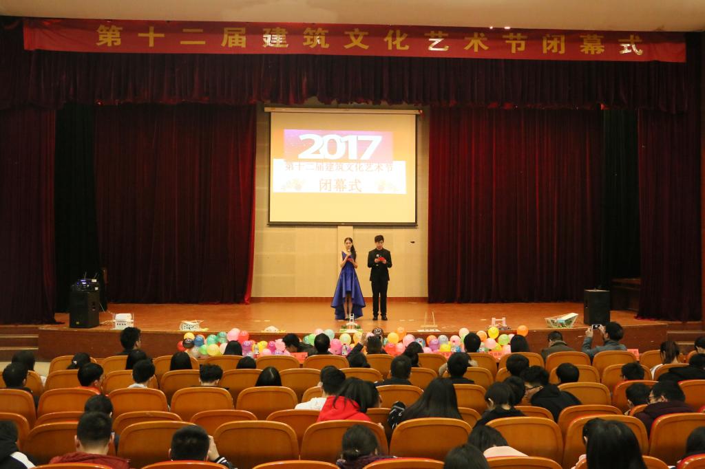 12月4日晚7点,嘉兴学院第十二届建筑文化艺术节闭幕式在教二报告厅隆重举行。嘉兴市建筑业行业协会副秘书长顾晴女士,嘉兴绿城塘汇房地产开发有限公司葛丽群女士、刘伟先生,中元建设集团股份有限公司总工程师俞黎明先生,嘉兴学院后宫电影院