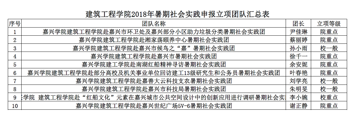 各团支部,2018年“双百双进”活动暑期集中性社会实践活动立项评审现已结束,此次活动院团委共上报立项申报书20份,内容涵盖文化创意类、环境保护类、社会服务类等,经校团委评审,拟定10项课题予以立项,现将结果公示如下: