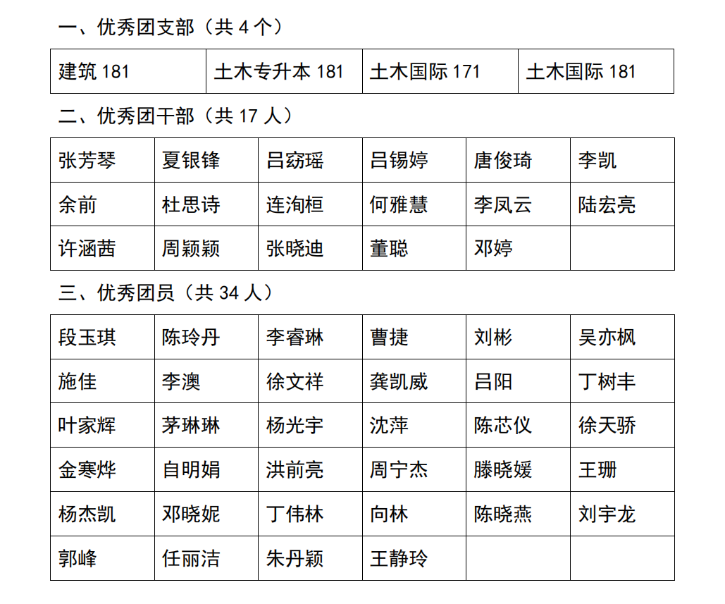 根据校团委《关于开展2019年“五四”评优工作的通知》文件要求,按照《建工学院五四评优工作管理办法》的规定,并经各团支部及学生组织民主推荐,现将评选结果公示如下:
