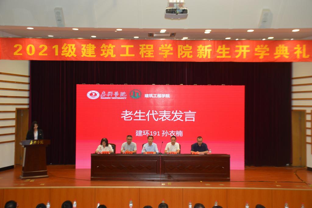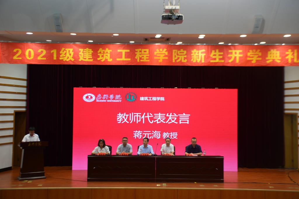 2021级新生开学典礼正式开始。首先由教师代表、浙江省高校优秀共产党员蒋元海发言,他表达了广大教师对学子的殷切期望和关怀之情;在校生代表、院学生会主席团成员孙衣楠表达了学长学姐对新生的亲切关怀;新生代表建筑212李海星表达了要在大学时光里发奋努力、立志成才的坚定决心和强烈愿望;优秀校友代表——浙江一舟建设管理有限公司董事长殳耀忠结合自身学习与工作的经历,分享了他的人生感悟,鼓励同学们充分享受大学时光,用不懈奋斗来谱写青春华章。院长王恩茂向同学们分享了对大学的认识,也对同学们即将开始的大学生活提出了希望和要求。