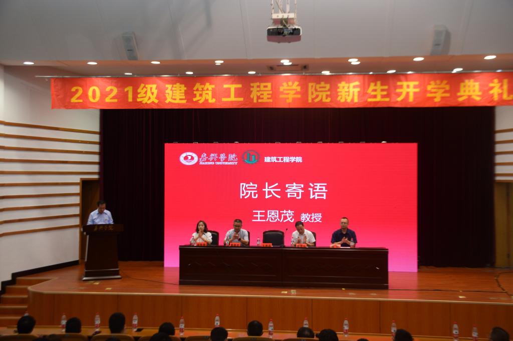 院长王恩茂,党委书记姚民乐,副院长黄殿武、陈华以及各系主任、新生班主任、思政辅导员和2021级全体新生。典礼由党委副书记杨智慧主持。