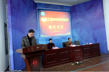 聘任仪式上,建工学院院长马嵘宣读了客座教授聘任文件,并代表学院做了热情洋溢的讲话。马院长代表学院对受聘的客座教授们表示感谢和欢迎,他希望学院能在各位专家的指导下,教学、科研等各个方面都有更大的发展,为逐步向实践性、应用型本科教育转型打下基础。马院长指出,全体教师特别是年轻教师要虚心向客座教授们学习,努力提高自身素质和教学水平,加快自身的成长进步。为了更好的发挥客座教授的作用,马院长强调学院要积极做好服务和沟通,设立专门的客座教授工作室,为客座教授来院工作提供办公和休息的场所,首次建立客座教授联络人制度,实现一对一服务。