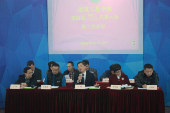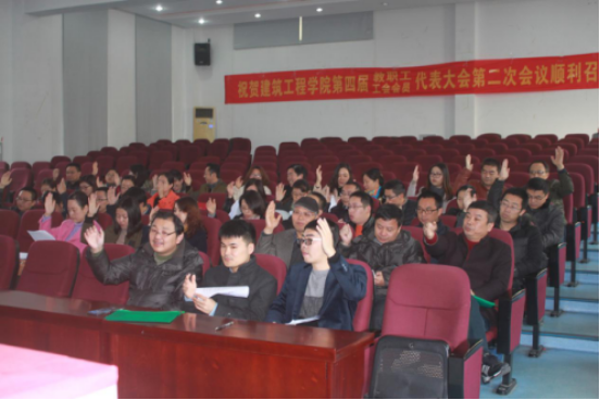 第四届教职工、工会会员代表大会第二次会议在越秀校区第四报告厅隆重举行。院长马嵘、书记费锦红,副院长孙德发、黄殿武,副书记王辉出席,会议应到70人,实到62人。双代会开幕式由费锦红书记主持。