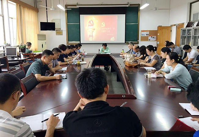 党委书记费锦红老师为全体党员做专题辅导报告。费书记围绕学校十三五规划和学校、学院面临的形势做讲解,激发党员参与学院中心工作的热情,鼓舞党员干事创业的信心。此外,还重点对“学党章党规、学系列讲话,做合格党员”相关内容做辅导,强调党员同志要坚持政治学习,坚定理想信念,提高党性修养。