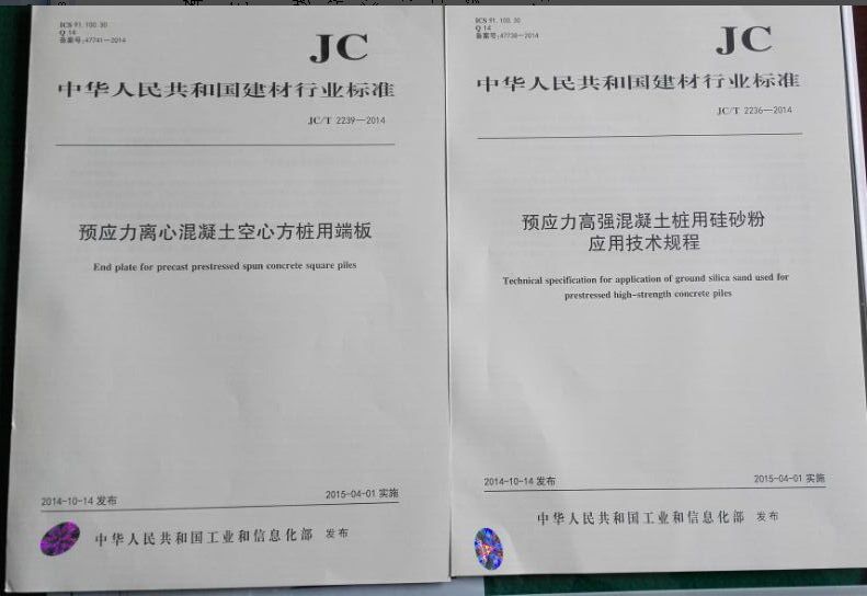 日前,国家工业和信息化部正式发布了两个国家建材行业标准,这两个行业标准分别为《预应力高强混凝土桩用硅砂粉应用技术规程》(JC/T 2236-2014)和《预应力离心混凝土空心方桩用端板》(JC/T 2239-2014),由后宫电影院 党委书记蒋元海教授牵头制定,4月1日起正式实施。