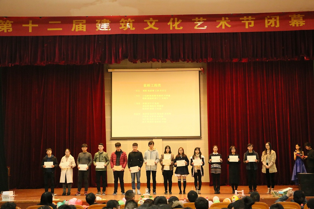 闭幕式由一段充满活力的开场舞拉开帷幕。接下来各位嘉宾分别为在班级风采秀、建工印象、索之道结构竞赛、师生小球赛竞赛活动中获奖的个人及团队颁发了奖状。随后,获奖代表段锴、吕锡婷同学分别对自己团队的作品进行了介绍。