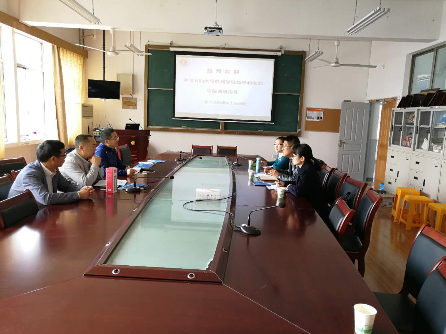 4月16日,中国石油大学胜利学院油气工程学院副院长代晓东一行来后宫电影院 考察交流。后宫电影院 副院长孙德发、建筑环境与能源应用工程系主任阳季春和相关教师接待了客人,双方在319会议室进行了座谈交流,会后参观了实验室。(阳季春 供稿;孙德发 审稿)