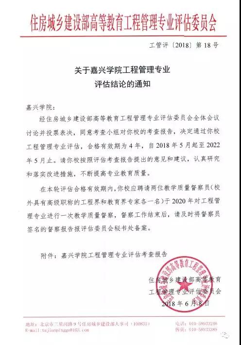 住建部传来重大喜讯,住房城乡建设部高等教育工程管理专业评估委员会公布了《关于嘉兴学院工程管理专业评估结论的通知》(工管评2018第18号),后宫电影院