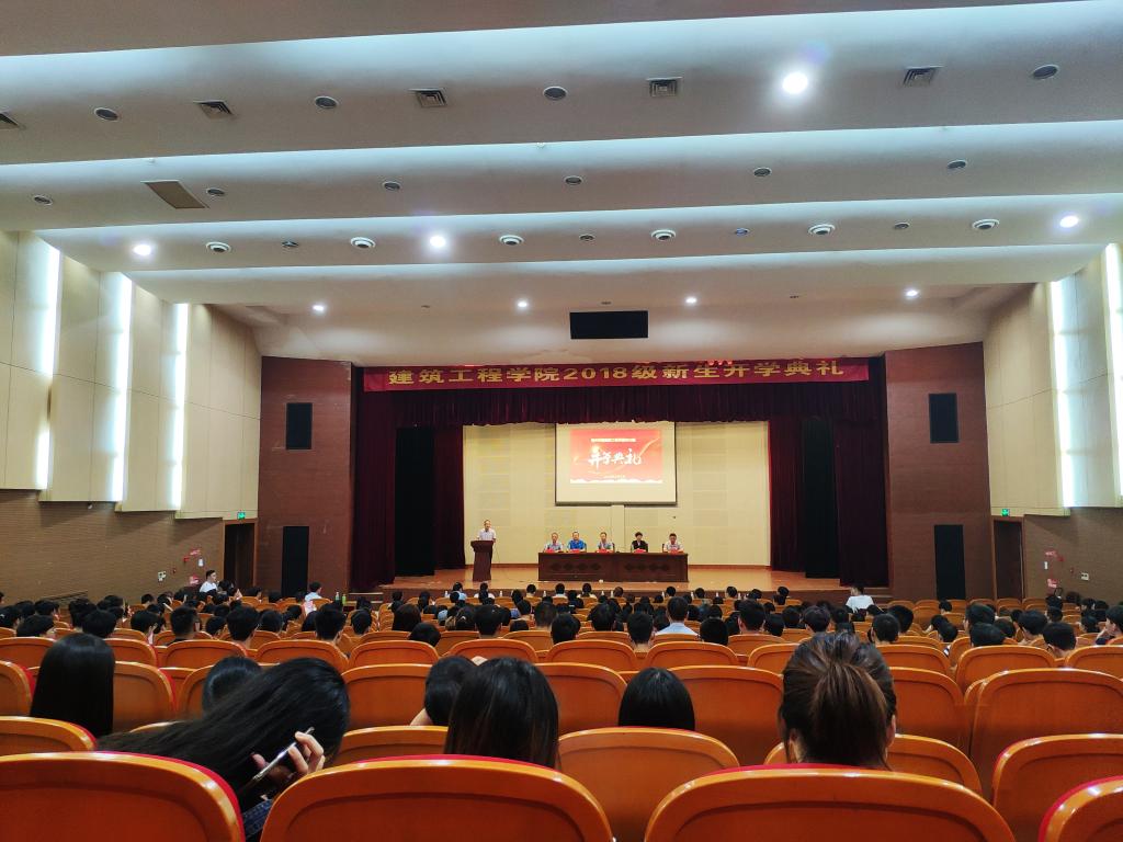 大会在国歌奏唱声中拉开序幕。教师代表、建筑环境与能源应用工程系副主任谷志攀,高年级学生代表、学生会主席陈佳枫和新生代表、2018级土木工程专业崔嘉铭同学相继在大会上发言,分别表达了广大教师对新生的殷切希望,学长学姐对新生的美好祝愿以及全体新生刻苦求学、不负韶华的决心。