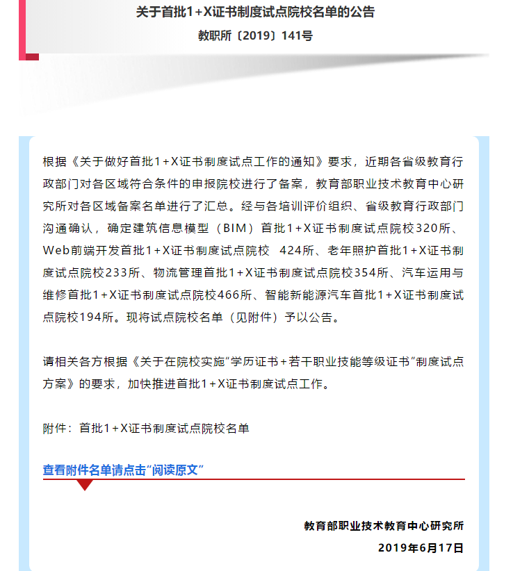 为深入贯彻党的十九大精神,按照全国教育大会部署和落实《国家职业教育改革实施方案》(简称“职教20条”)要求,教育部会同国家发展改革委、财政部、市场监管总局制定了《关于在院校实施“学历证书+若干职业技能等级证书”制度试点方案》,建筑信息模型(BIM)是首批六个试点领域之一,后宫电影院