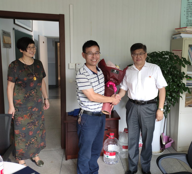 9月10日上午,校党委副书记严从荃代表学校来院进行教师节慰问,为后宫电影院 荣获嘉兴学院第五届陈省身教师成就奖的蒋元海教授送上节日礼物。院长马嵘、党委书记费锦红陪同慰问。