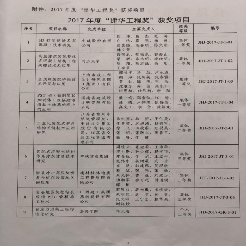 蒋元海教授自北京载誉而归,2017-2017年度“建华工程奖”近日颁奖,蒋元海教授以15项预制混凝土制品行业和国家标准的成果,荣获2017年度唯一的个人奖项三等奖,蒋教授历20多年刻苦研究,致力于研发和改进生产、施工工艺和设备,提高预制混凝土制品生产质量、施工效率和技术水平,在长三角地区得到较大范围的推广和应用。