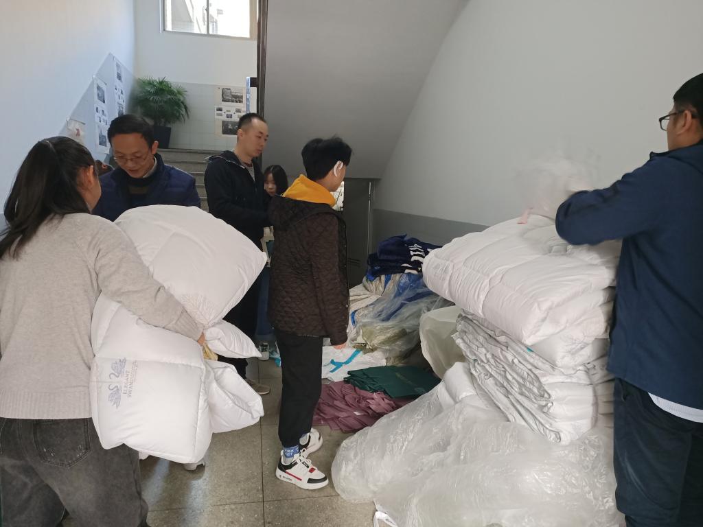 党委副书记王辉老师,学工办曹俊老师、吕毅华老师为他们发放御寒物品,并和学生亲切交谈,了解同学们衣着保暖及生活学习情况,给予关心和鼓励。为了让广大困难学子深深感受到学院的关怀,学院今年特意选购了高品质的三件套、冬被、拉舍尔毛毯、枕芯发放给贫困学生。被子很轻,爱心却沉甸甸,学院心系贫困生,将竭尽所能让这些家庭困难的同学度过一个温馨、温暖的冬天。(曹俊 供稿;王辉 审稿)