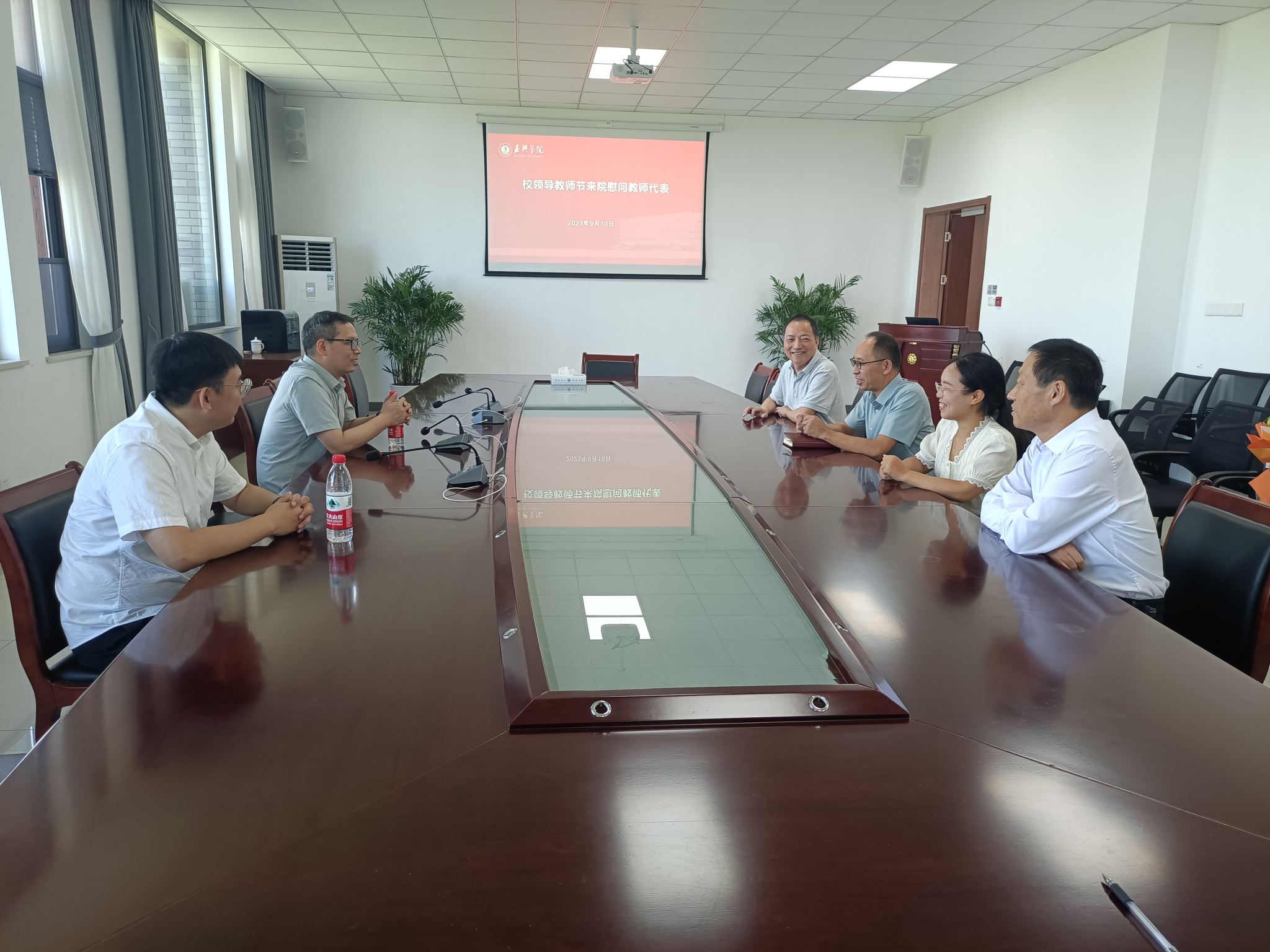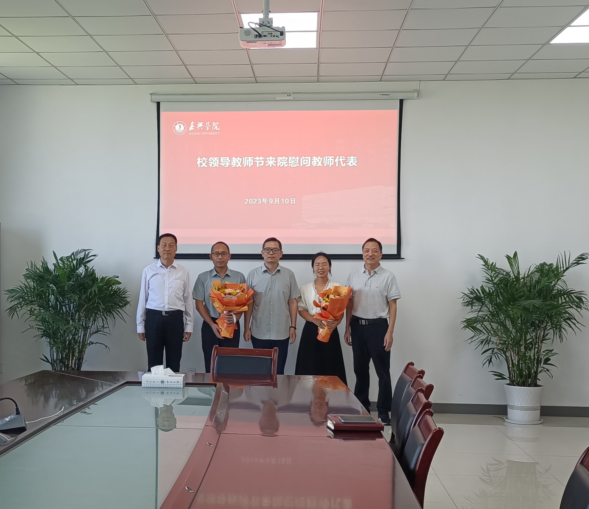 9月10日迎来第39个教师节,嘉兴学院副校长周宏伟代表学校来后宫电影院 看望慰问教师代表。王恩茂院长、姚民乐书记陪同。