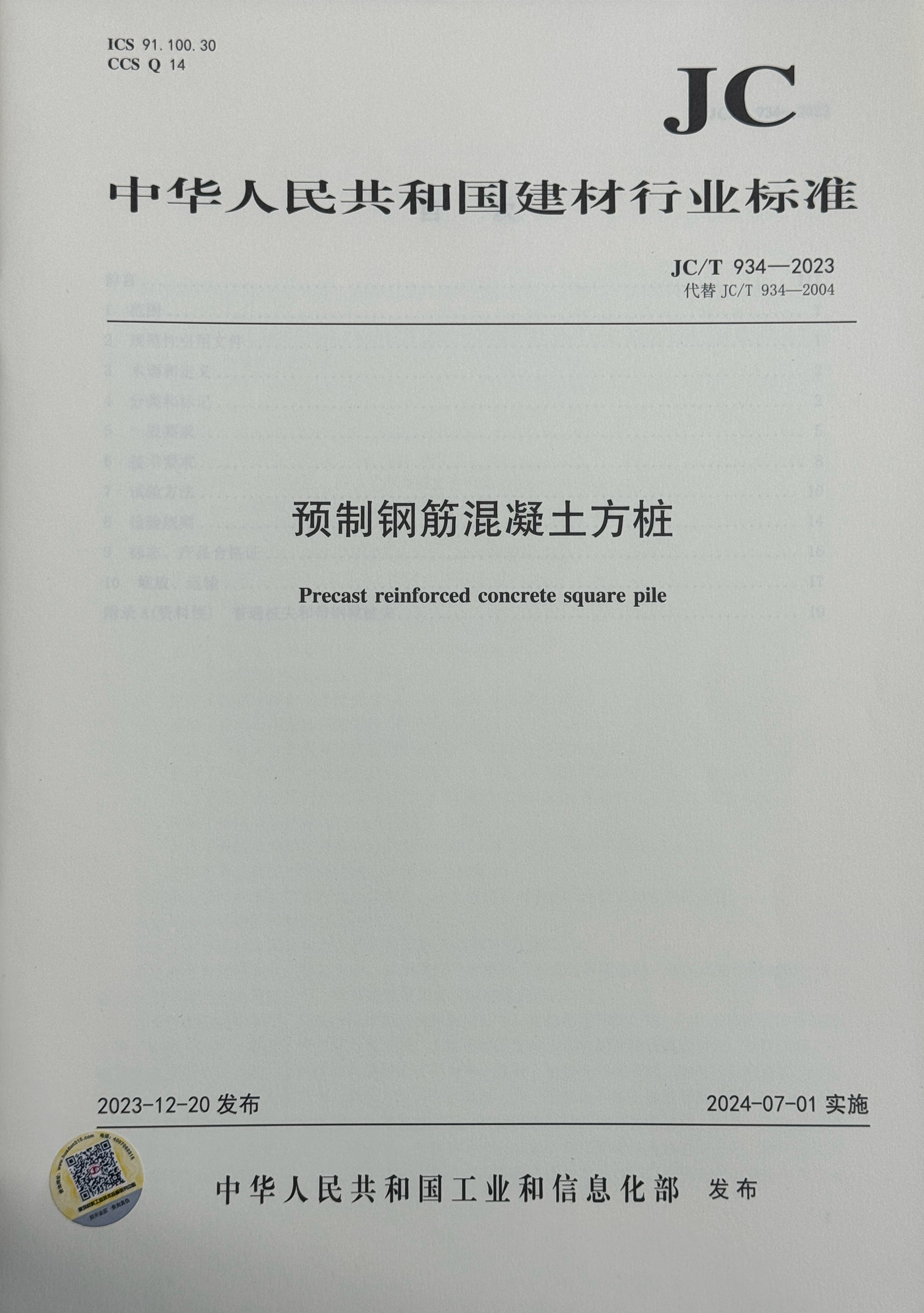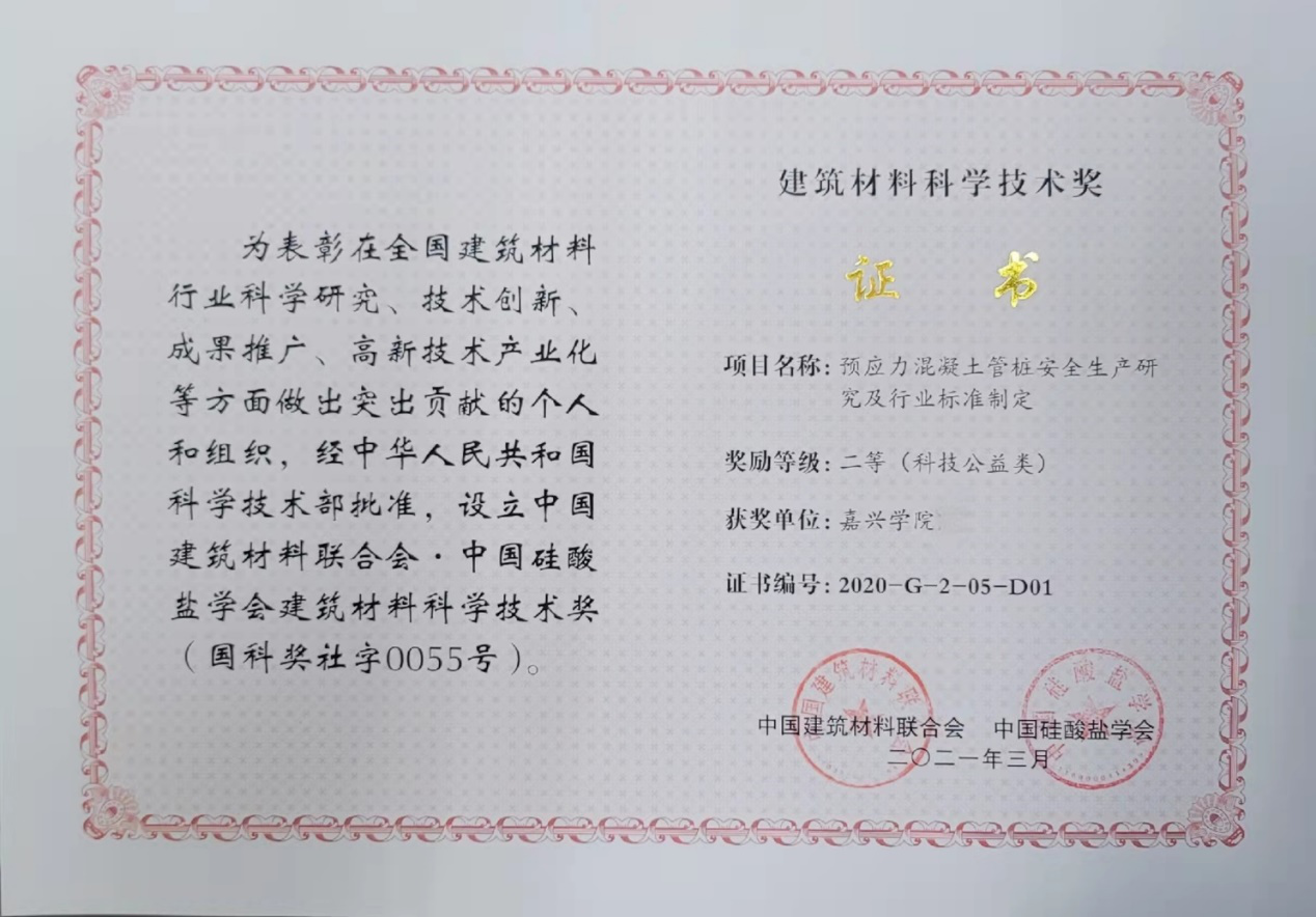 蒋元海教授主持起草修订的《预应力混凝土薄壁管桩》(JC/T 888-2023)、《预制钢筋混凝土方桩》(JC/T 934-2023)和黄殿武副教授主持起草修订的《混凝土地面用水泥基耐磨材料》(JC/T 906-2023)3项建材行业标准正式发布。于2023年12月20日发布,2024年7月1日实施