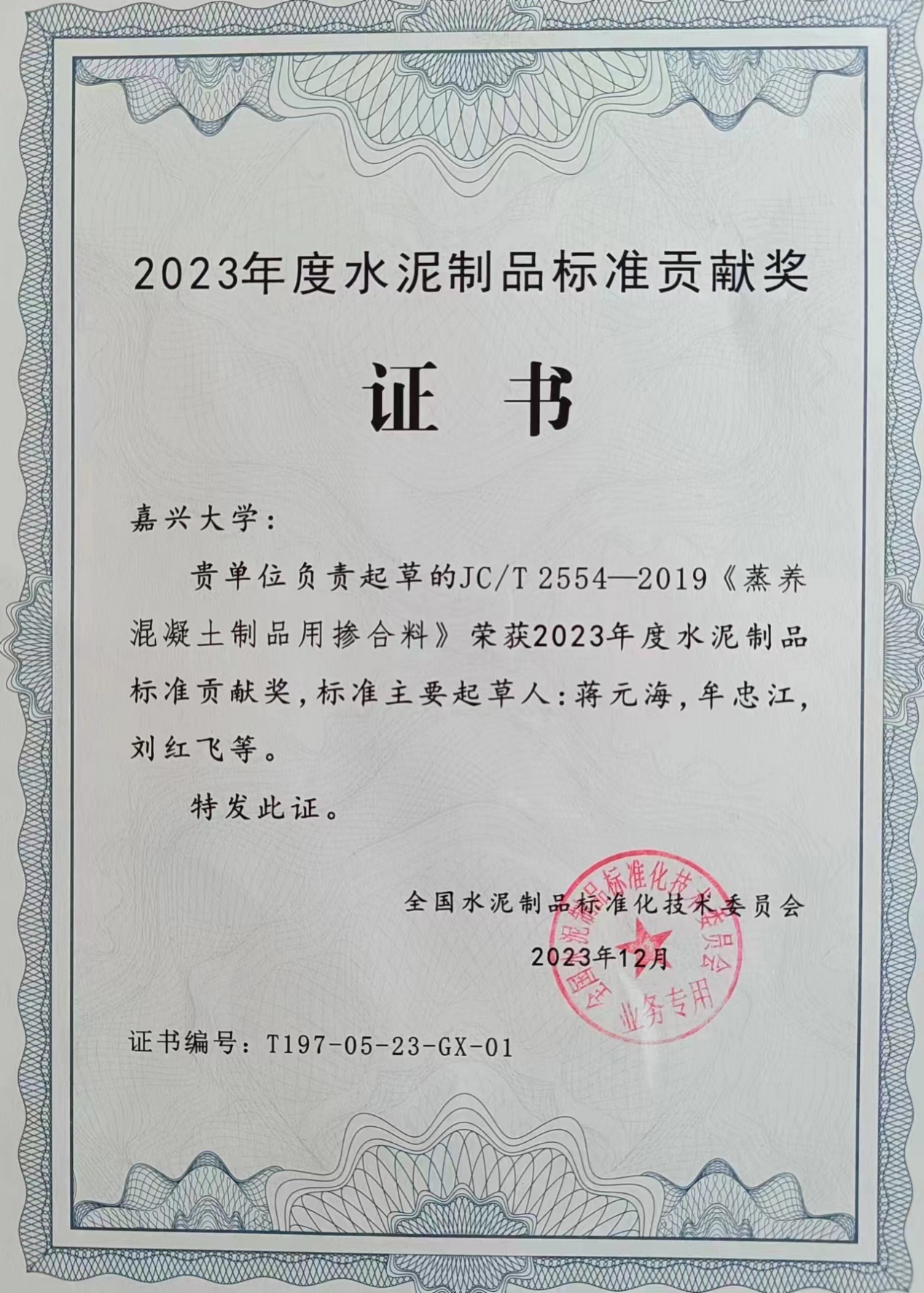 在开展教学、科研、社会服务的同时,积极推进我国建筑建材等领域的标准化工作,组建了标准化基层组织,参加标准培训,组织申报国家标准、行业标准项目,开展新立项标准项目的起草及新发布标准的宣贯等。先后主持和参与起草的国家标准、行业标准、地方标准、团体标准等40多项。蒋元海教授分别获“标准科技创新奖—领军人才奖”和“2023年度水泥制品标准化先进个人”,由蒋元海教授水泥制品标准化研究团队完成的“《预应力混凝土管桩安全生产要求》(JC/T 2162-2012)、中国建筑材料协会标准《水泥混凝土制品生产用蒸压釜安全操作规程》(T/CBMF 22-2018)”、“《蒸养混凝土制品用掺合料》(JC/T 2554-2019)分别获得2020年度全国建材行业科技进步二等奖和2023年度全国水泥制品标准化技术委员会贡献奖。