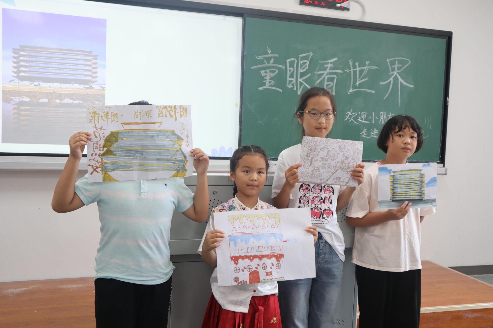 随后,在“童眼看世界”趣味小课堂上,建工学院志愿者们为孩子们生动地讲述了中国建筑的历史与奥妙,带领孩子们领略了我校图书馆建筑风采。孩子们纷纷拿起画笔,描绘出自己心中的大学。志愿者们还带领孩子们参观了后宫电影院
