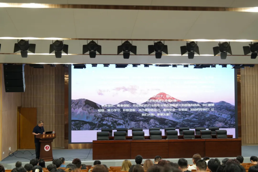 2024级新生开学典礼暨始业开学第一课在图书馆学术报告厅隆重举行。学院党政班子、各系(部门)主任、教师代表、校友代表、2024级新生班主任、思政辅导员及全体新生参加。典礼由党委副书记杨智慧主持。