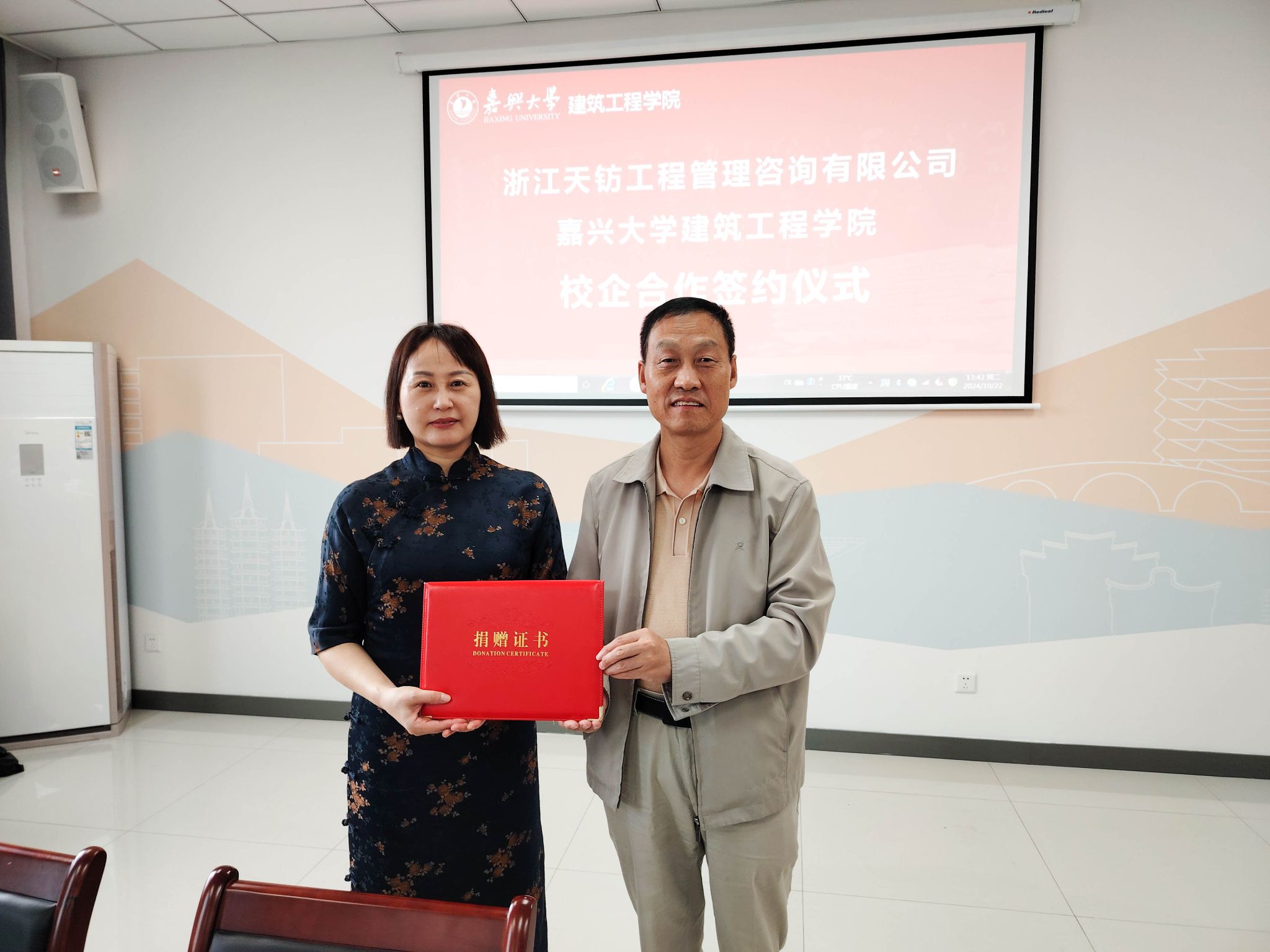 与浙江天钫工程管理咨询有限公司举办校企合作签约仪式。浙江天钫工程管理咨询有限公司嘉兴分公司总经理符小玲女士一行来学院参加活动,并共同见证了这一重要时刻。