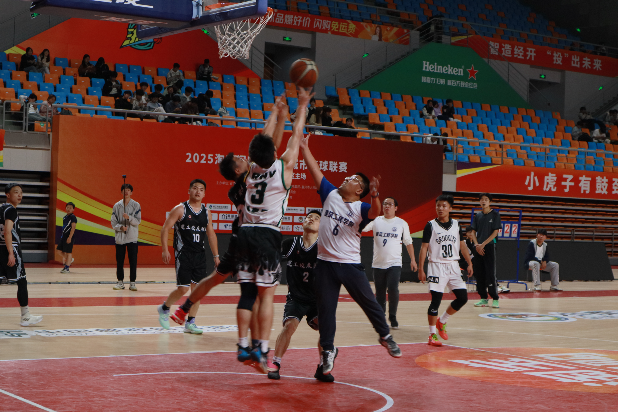 赛场上,校友们快速敏捷的攻防转换、精准利落的远投三分、灵活巧妙的突破上篮,每一个动作都尽显建工人敢闯敢拼、勇毅前行的精神底色;教职工队则凭借沉稳的心态从容应对,严密紧凑的防守、恰到好处的传球、果断有力的反击,一次次化解对手攻势、发起有效进攻,充分展现出学院教职工队伍的活力风采。比赛现场精彩瞬间不断涌现,引得场下观众阵阵欢呼。