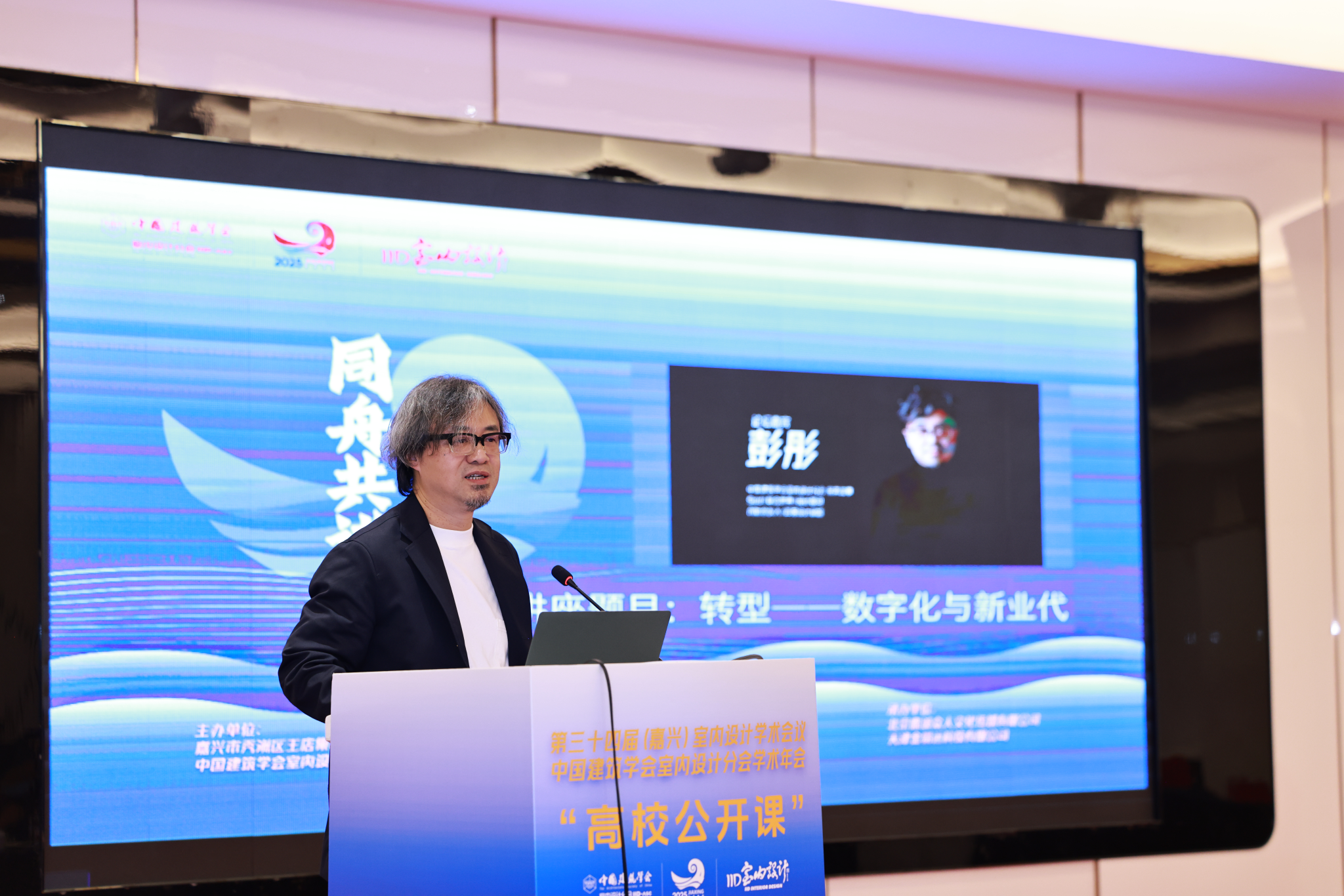 中国建筑学会室内设计分会常务理事、Sdd(联合世典)设计顾问、高级合伙人、首席设计总监的行业专家彭彤,为参会者带来题为《转型-数字化与新业代》的精彩分享。他结合当下室内设计行业调整转型的关键节点,围绕设计实践中的新问题与新课题,分享了自身实践心得,为行业从业者与教育者探索新质生产力发展方向提供了重要参考。