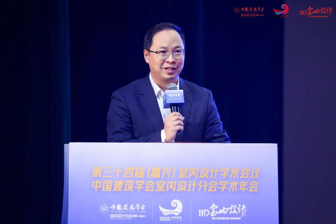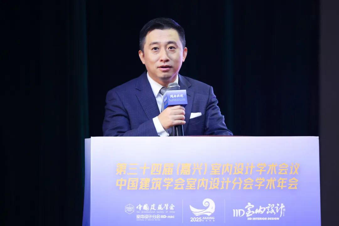 中国建筑学会秘书长、全国工程勘察设计大师李存东首先致辞。他强调,中国建筑学会始终为室内设计行业搭建顶层学术框架,提供专业资源支持,推动室内设计与建筑行业整体进步,引领行业发展。
