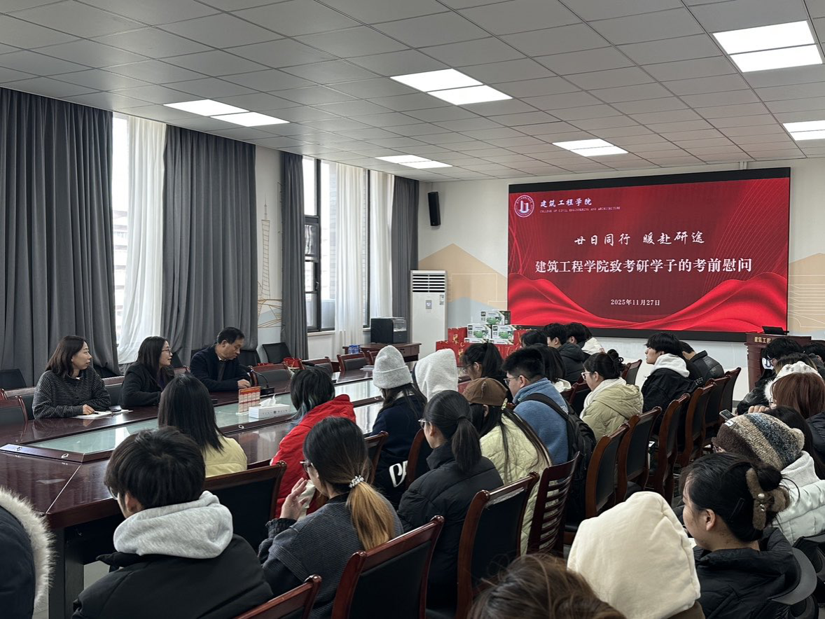 精心举办“廿日同行 暖赴研途”为主题的考研慰问活动。学院院长王恩茂、党委副书记杨智慧、学工办主任徐静、辅导员黄明叶以及2026年考研学子参加了活动。活动由学院党委副书记杨智慧主持。