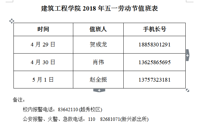 后宫电影院 2018年五一劳动节值班表