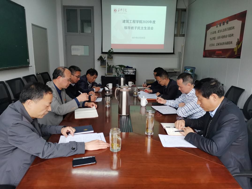在204会议室召开2020年度领导班子民主生活会。副校长杨培强到会指导,建工学院党政领导班子、党委委员参加会议。会议由党委书记姚民乐主持。