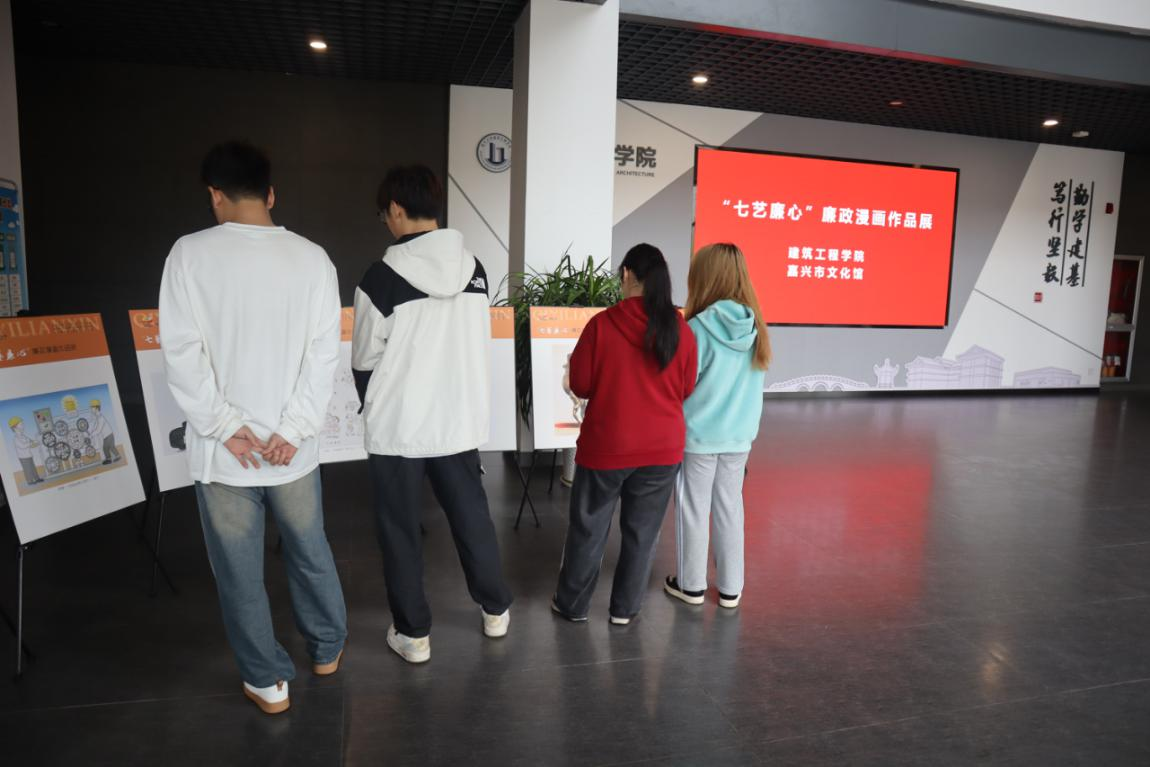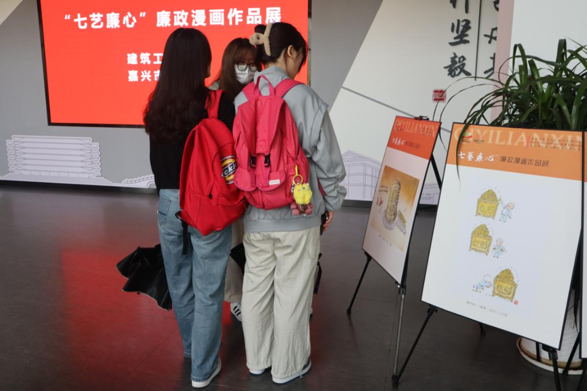 展出期间吸引了许多老师和同学驻足漫画作品前,细细品读着一幅幅趣味横生的漫画,静心感悟其中蕴含的崇廉尚廉的价值理念,在欣赏作品的同时,潜移默化地感悟廉洁文化内涵。