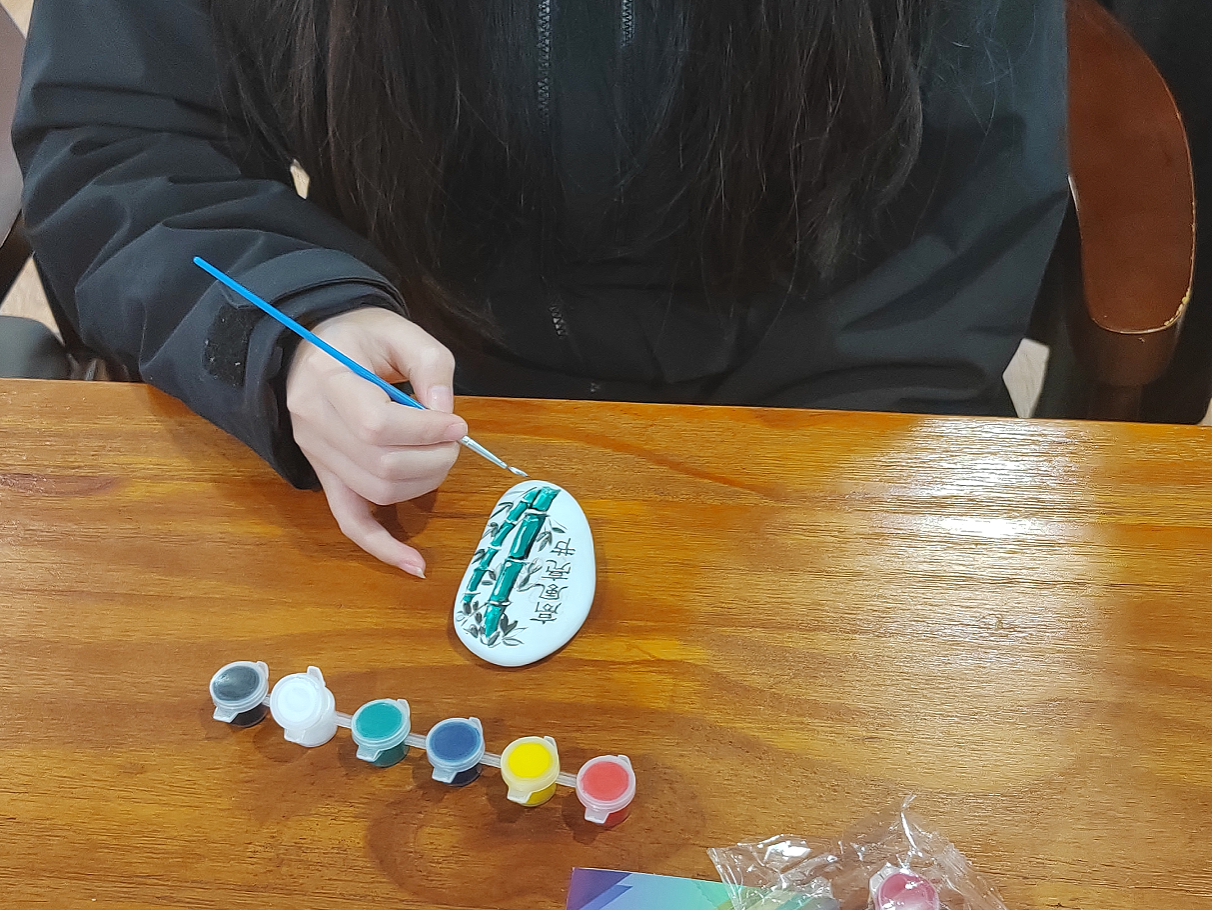 随后,大家纷纷拿起画笔,开始了石头画创作。学生们围绕廉洁主题,充分发挥想象力和创造力,有的描绘了莲花,寓意着“出淤泥而不染,濯清涟而不妖”的清正廉洁;有的描绘了翠竹,象征着“咬定青山不放松,立根原在破岩中”的坚韧不拔。在这段充满创意与艺术氛围的时光里,每个人都根据自己对廉洁文化的理解,将廉洁元素与个人的艺术表达相融合。创作完成后,大家在现场展示了自己的石头画,并分享了作品背后的廉洁寓意。每一幅作品都别具匠心,展示了年轻一代对廉洁文化的理解与传承。大家纷纷表示今后要以“石”为证,下定决心要认认真真学习,踏踏实实做事,清清白白做人。