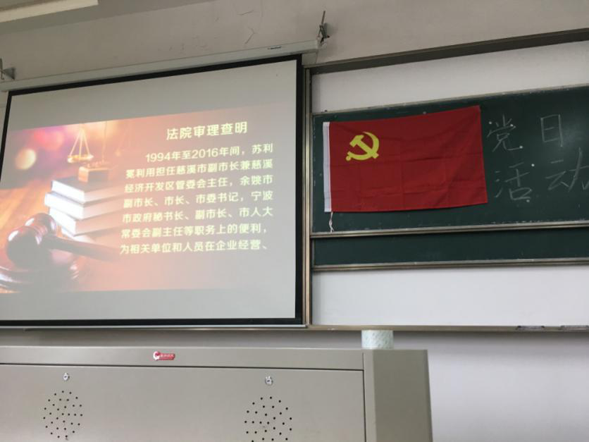 本次党日活动的主题是:“警示教育”,本次党日活动主要观看了浙江省纪委《以案为鉴警钟长鸣》警示专题片,开展廉政警示集体教育,推动警示教育科学化、规范化、常态化。【警钟长鸣】第三期:从励志奋斗到痴迷享乐这一篇,2018年6月27日,宁波市人大常委会原副主任、市总工会原主席苏立冕因犯受贿罪,被判处有期徒刑七年六个月,并处罚金人民币三十万元。被宁波人称为“拉菲苏”且钟爱喝拉菲品牌红酒的苏利冕,生于困难时期,工作在改革开放时期,深知贫穷滋味的他,年轻时靠不懈努力和实干赢得了荣誉,也赢得了组织的信任。然而,他却没有珍惜。身为党员领导干部,苏利冕理想信念的缺失,思想认知错位,丧失了一名共产党员应有的党性初心。
