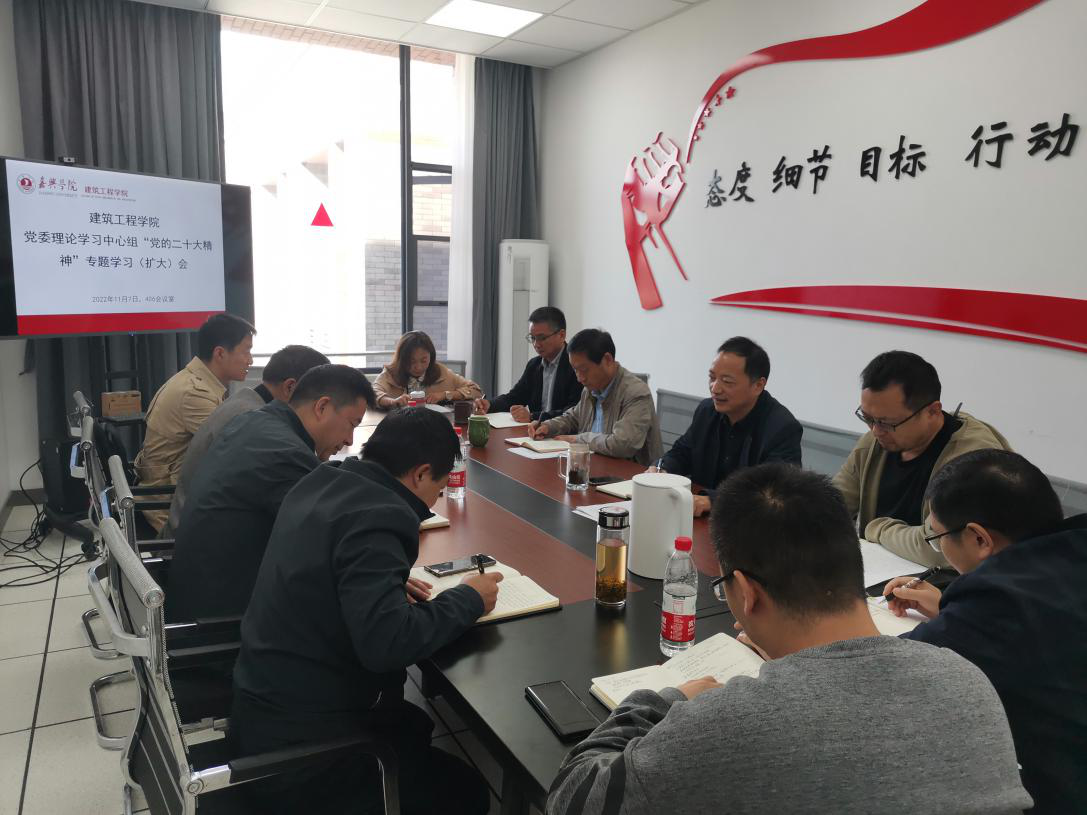 党委理论学习中心组举行“学习贯彻党的二十大精神”专题学习(扩大)会。学院党委委员、党委办公室主任、各党支部书记参加会议。会议由党委书记姚民乐主持,副院长黄殿武作中心发言。