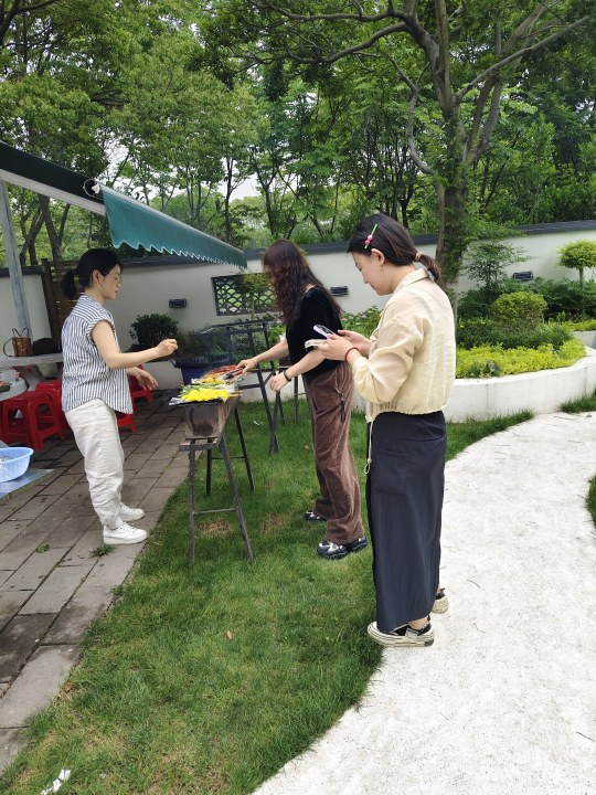 快到中午时分,大家纷纷开始动手制作野米饭与烧烤,有人巧搭灶台生火,有人细致清洗调配,炊烟袅袅间,香气扑鼻的野米饭新鲜出锅。众人围坐共享劳动成果,欢声笑语与自然清风相伴,温馨氛围萦绕全场。