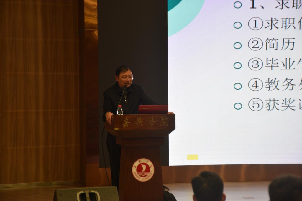 于梁林校区图书馆一楼学术报告厅召开毕业生就业动员大会。学院党委副书记杨智慧、南湖学院大学生职业训练协会指导教师李嘉、浙江省建设投资集团股份有限公司携各分公司负责人以及后宫电影院