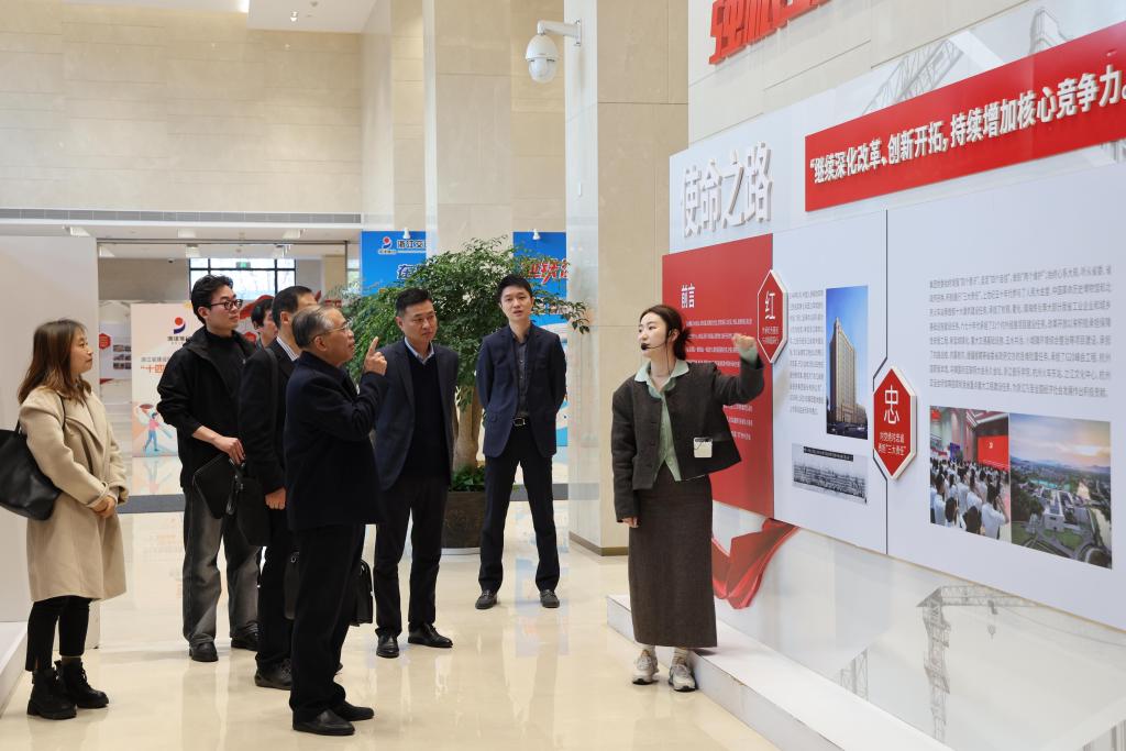 钱方明一行参观了浙江省建工集团展厅,对该公司的企业发展历程、集团组织架构、后宫电影院、集团荣誉、重点工程、人才创新、党建活动等方面进行了详细了解。