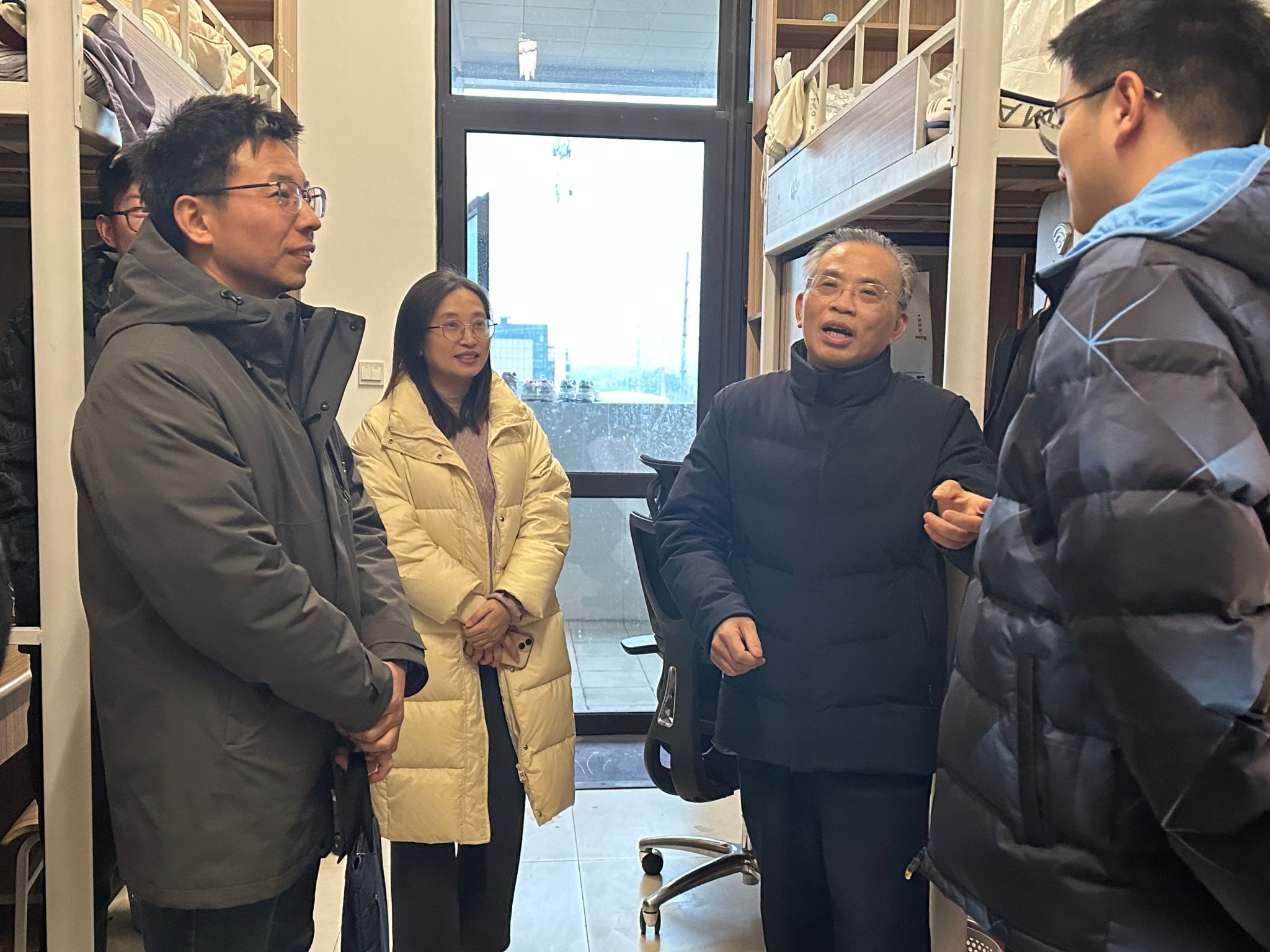 学生寝室亲切看望返校的学生,建工学院党委书记童勇军、学生处副处长马晓红、建工学院党委副书记杨智慧陪同走访。