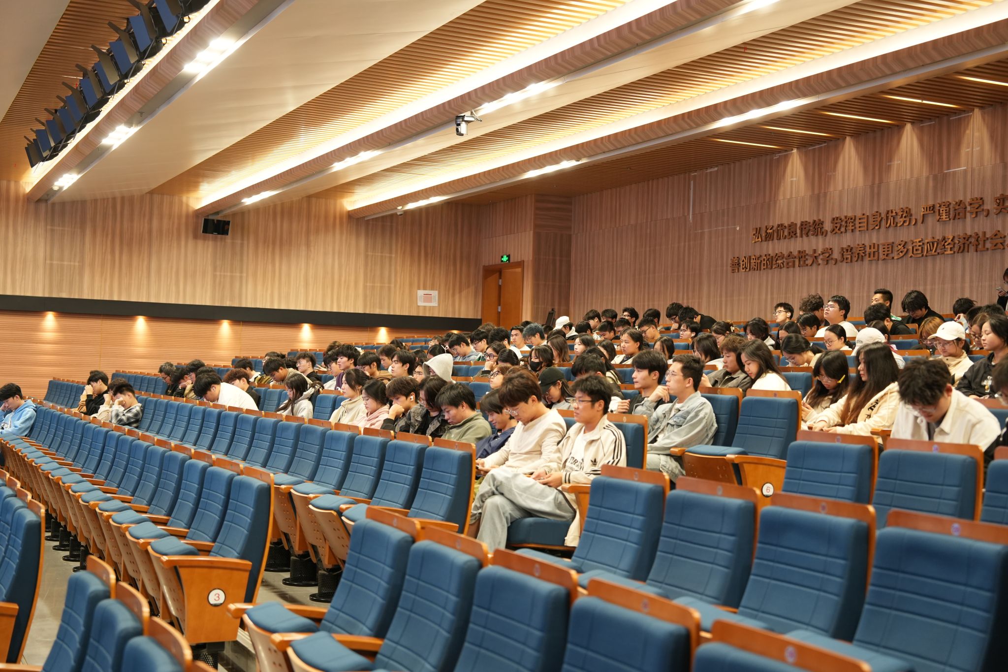 在图书馆一楼学术报告厅举办“奋斗青春,逐梦前行”考研指导会。就业辅导员庄峰、启航考研讲师薛非及2022级学生参加会议。