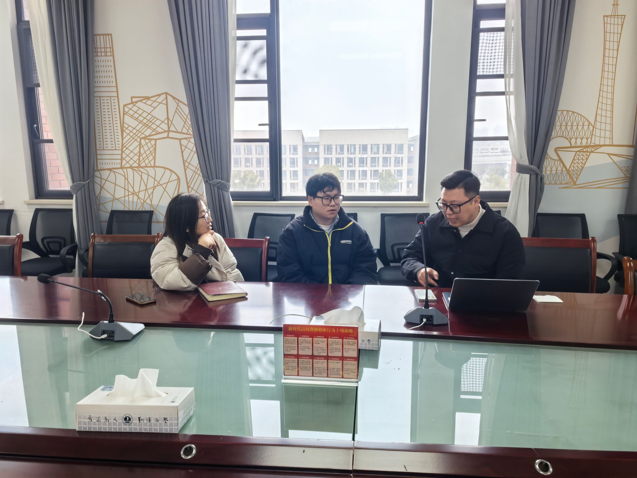 在兴德楼北楼512会议室举办“助力梦想,共赴未来——2025届考研学生座谈会”。学院党委副书记杨智慧、副院长熊厚仁、就业辅导员庄峰、毕业班班主任及考研学生线上线下同步参会。