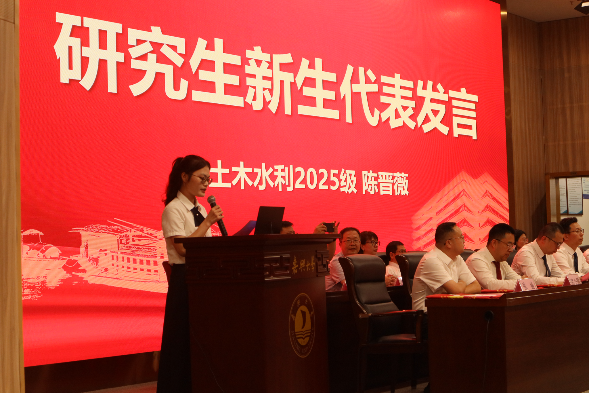 在发言环节,本科新生代表谢欣茹分享了她对建筑工程领域的强烈好奇和探索专业知识的坚定决心。研究生新生代表陈晋薇则详细畅谈了自己的科研规划,流露出对深耕专业的满腔热忱。老生代表徐满强结合自身的校园经历,从学习、社团活动到社会实践等方面,为新生们传授了宝贵的经验。教师代表王梓骁深入介绍了学科的发展前景,鼓励新生们夯实基础、多思考、多练习。校友代表张盛通过分享自己的职场故事,解读了行业对人才的需求,为新生们搭建起了校园与社会沟通的桥梁。