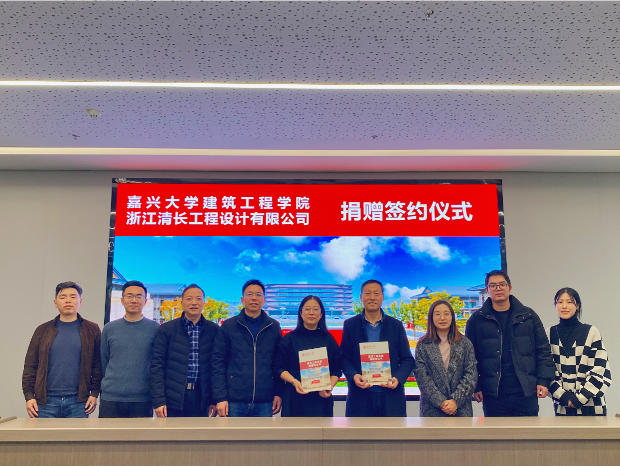 2002届房建专业校友徐璟清爱心捐赠仪式在浙江清长工程设计有限公司举行。学院党政领导参加了仪式。